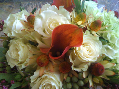 Black magic roses, dark mums, orange blossoms... wonderful.
